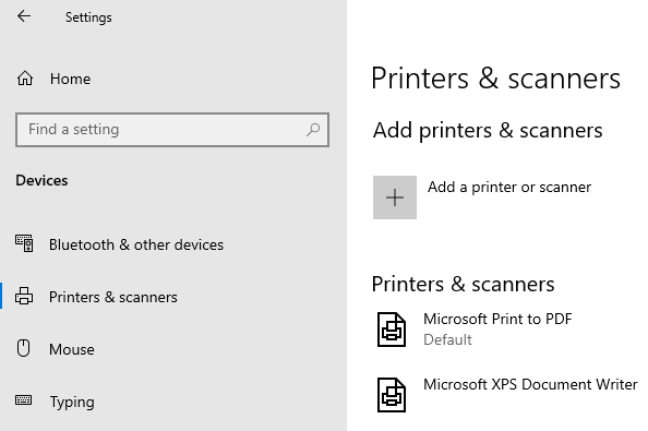 - Open Device and Printers from the Start menu (i.e. Start Menu > Settings > Devices > Printers & scanners) or from the Control Panel.